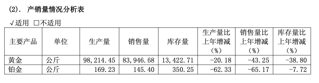 2024年,老凤祥的黄金生产量为9.82万公斤,同比下降20.18%;销售量为8.39万公斤,同比下降43.25%。铂金的生产量169.23公斤,同比下降62.33%;销售量145.40公斤,同比下降65.17%。